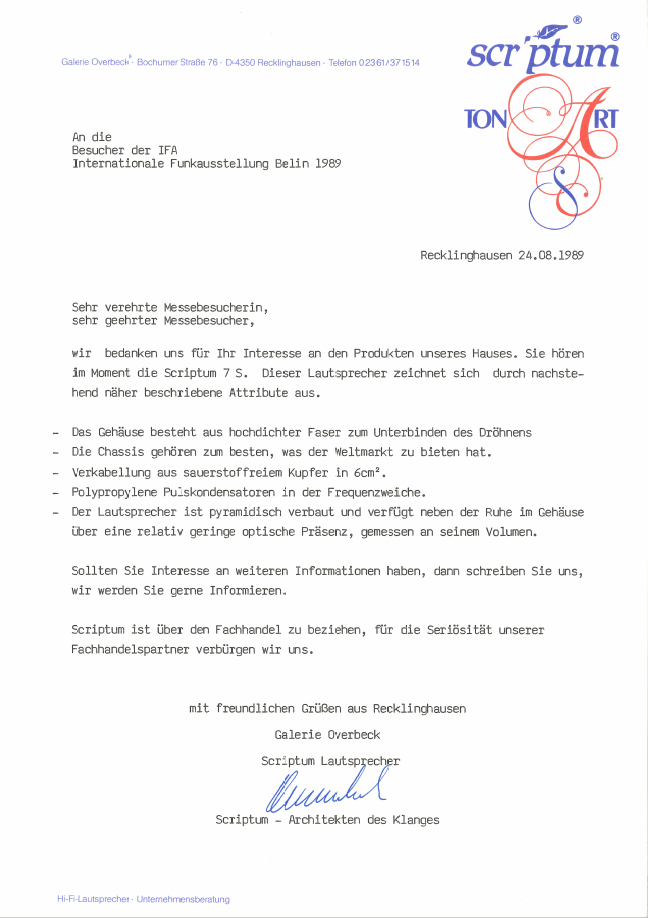 Hier die offizielle Preisliste von 1988 für die Scriptum-Lautsprecher.